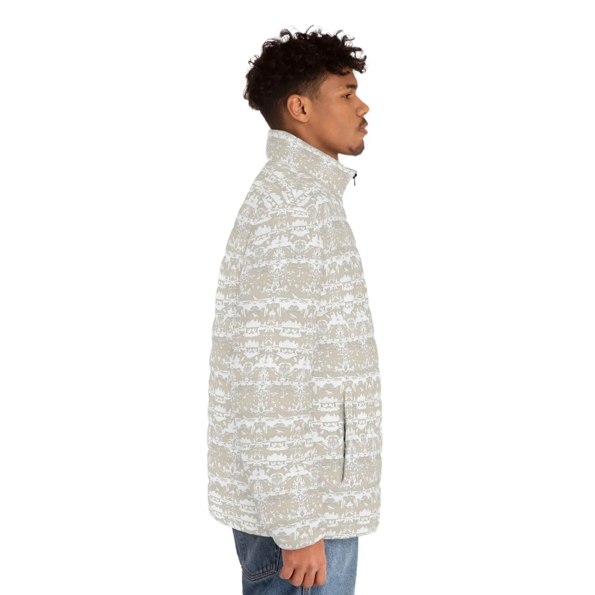 Breathe in the chill of high alpine mornings and feel the soft, insulated hush as you zip up. This puffer jacket wears a quiet ski-inspired pattern that slips easily between city streets and mountain lodges. The quilted lining and stand-up collar hold warmth without bulk. Pockets take the weight of your gloves and phone. Elastic cuffs lock in heat and keep wind at bay while the sturdy metal-head zipper asks for one-handed confidence. It’s for those who move from trailhead to café, who like their outerwear practical but not loud. Wear it on crisp commutes, cottage weekends, early-lift runs, or evening strolls where a little alpine calm feels right.