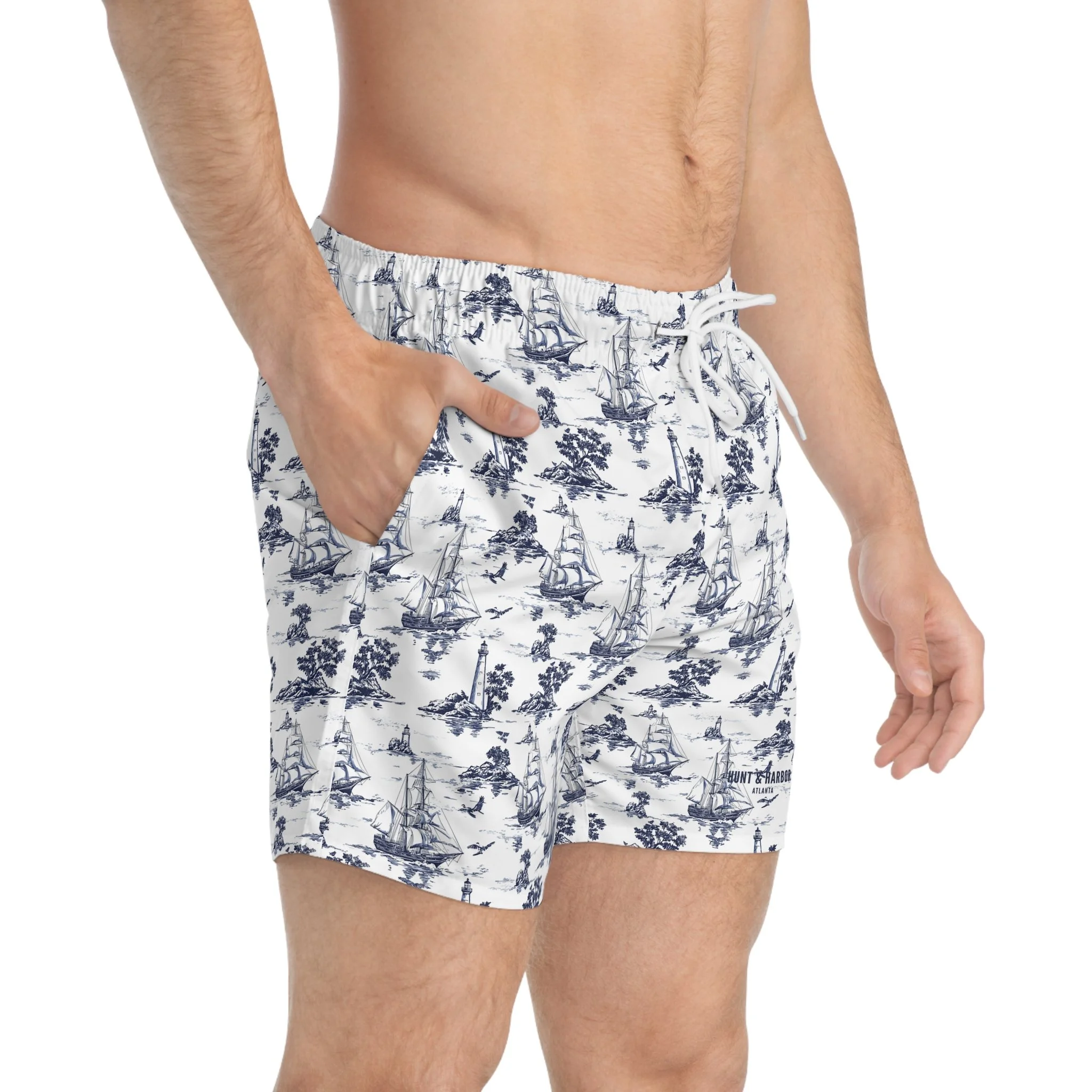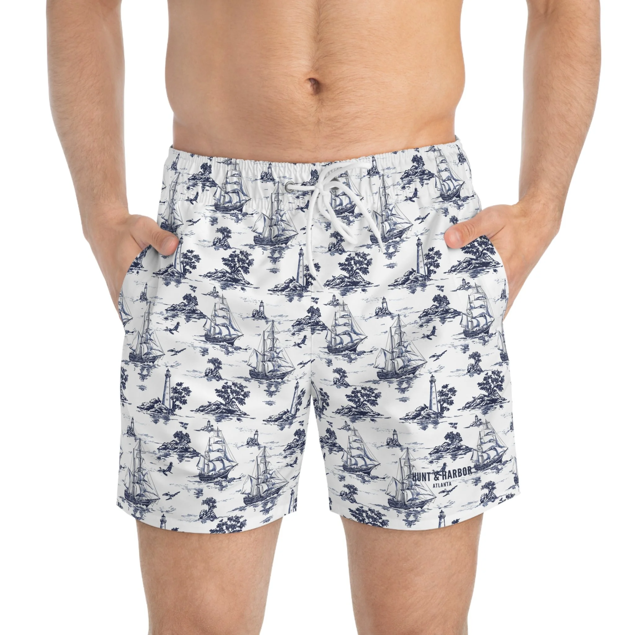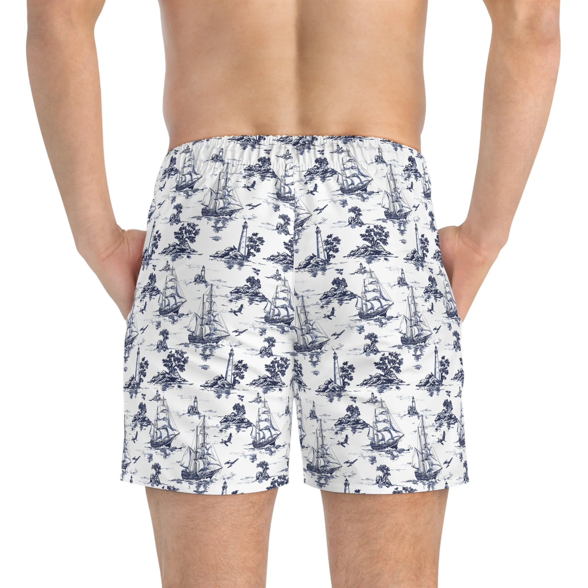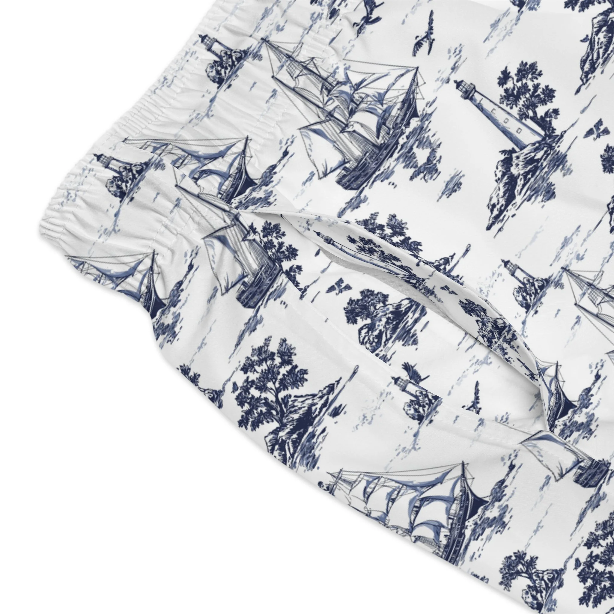 These swim trunks mix outdoors grit with ocean calm. The overall dark-blue, ocean-like print wraps the body like deep water, while the right-front panel pops with a hyper-real fish scale pattern—textured, glossy, and detailed enough that you’ll do a double-take. Lightweight and quick-drying, they move with you from kayaks and reef swims to evenings at the fire pit. Mesh-lined pockets and a mesh basket lining keep gear ventilated and secure. The low-rise cut with clean side seams gives structure without bulk, and the drawstring waist lets you fine-tune the fit whether you’re diving, paddling, or swapping stories as the sun sets. The print holds its vibrancy over many washes, so the scale detail stays sharp and the dark-blue depths stay rich. For people who live where land and water meet, these trunks feel both familiar and refreshingly bold.