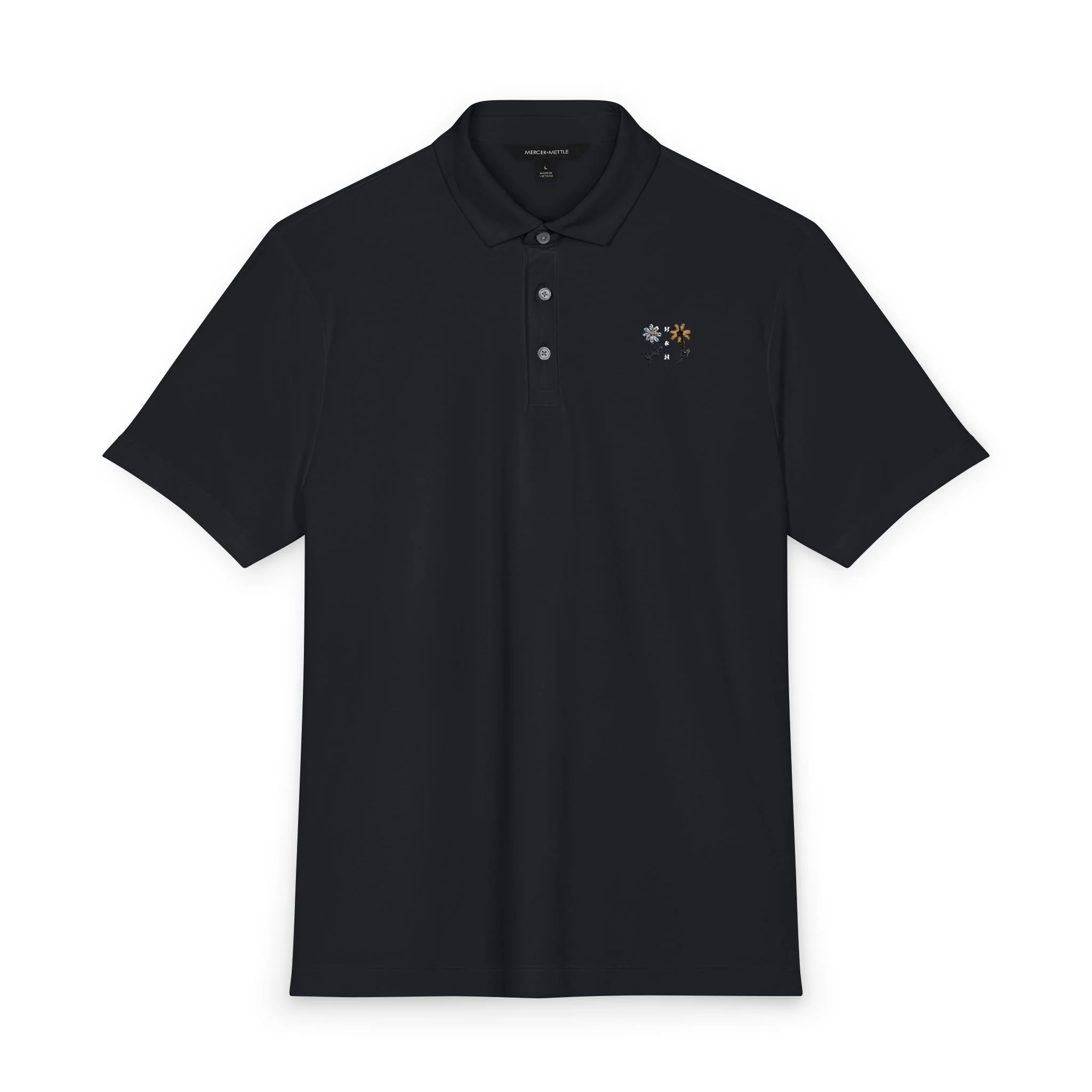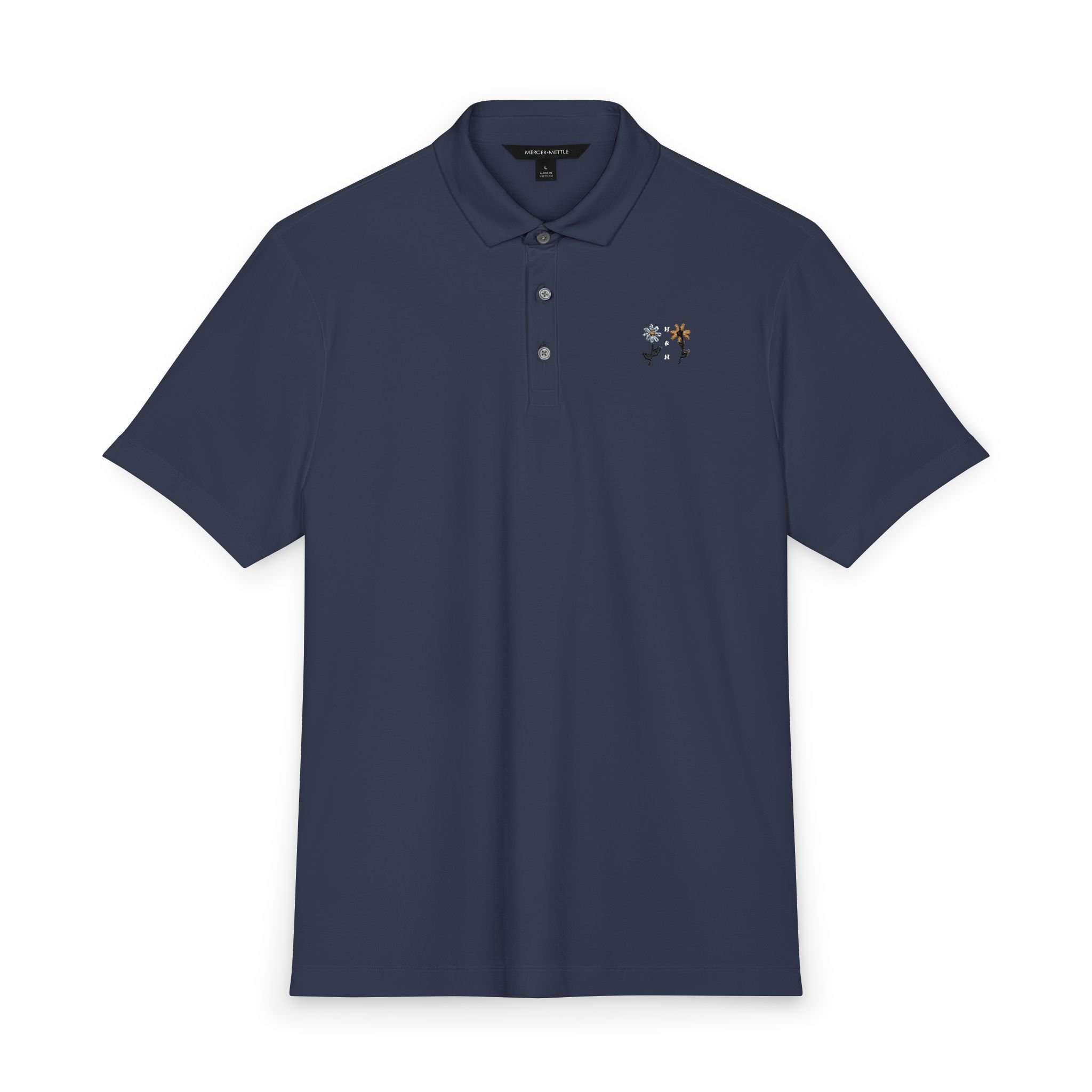 This lightweight stretch polo brings a quiet, confident energy to early-morning rounds and afternoon practice. The breathable Mercer+Mettle jersey moves with you—stretching across the shoulders, shedding sweat, and settling softly against the skin. A small, spring floral embroidered logo adds a thoughtful, handcrafted note to an otherwise sporty silhouette, like a clipped bloom at the lapel that speaks to attention and care. Wear it to the course, the clubhouse patio, or a casual meet-up with teammates; it layers easily under a sweater or stands on its own when the sun breaks through. The tailored placket and neat collar keep the look tidy without fuss, while the light fabric and notched vents keep airflow focused where you need it. For players who value precision in both swing and style, this polo feels deliberate—clean lines, subtle detail, and performance built in.