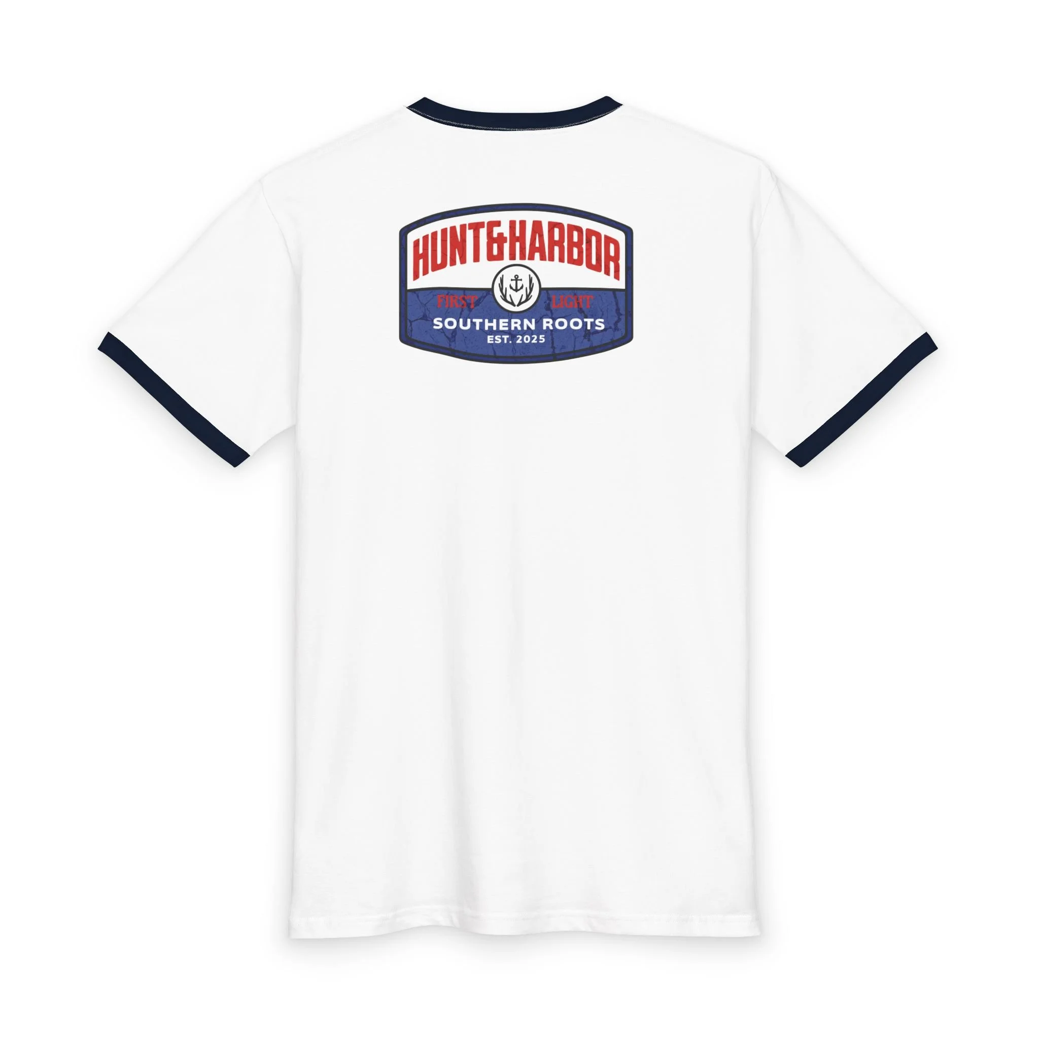 Lightweight, retro-inspired ringer tee designed for everyday wear and outdoor-minded style. The Hunt & Harbor graphics bring a subtle outdoorsy edge—three distinct prints that nod to trails, shoreline trips, and quiet mornings in the woods. The tee feels smooth against the skin and holds its shape through washes, so it lives on long hikes, at weekend coffee runs, or layered under a flannel for cool evenings. It sits comfortably on the shoulder and through the torso, letting the art be the focus without fuss. Wear it when you want a bit of vintage attitude with reliable construction.