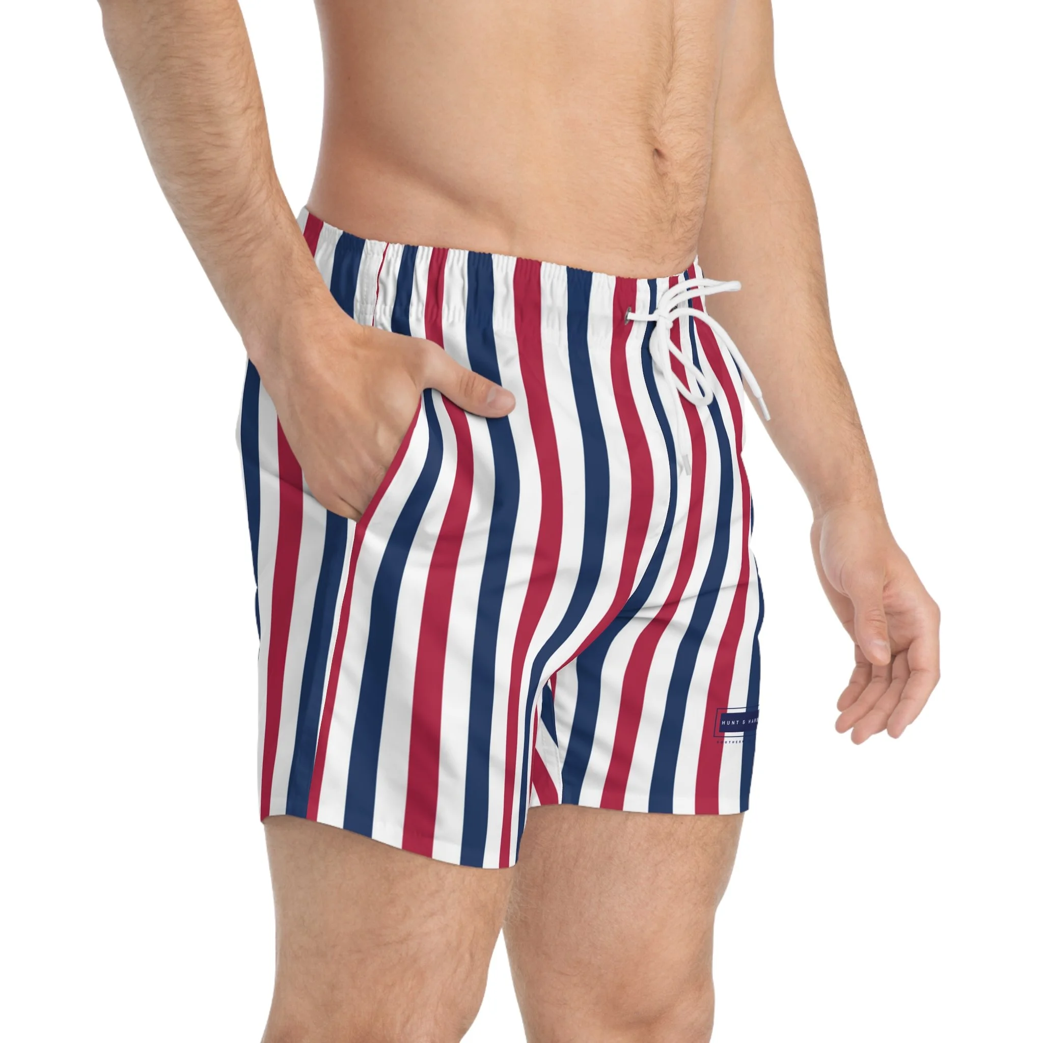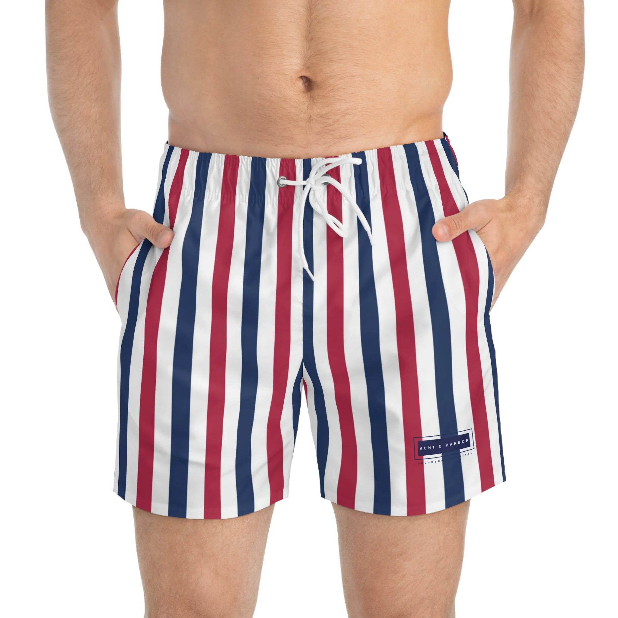Dive into summer with our vibrant Swim Trunks, perfect for beach days and pool parties. Stay stylish and comfortable at the beach or pool with these swim trunks featuring a blue motif pattern and the Hunt & Harbor Southern Tradition logo. Perfect for beach lovers and vacation-goers, these swim trunks give off a relaxed and fun vibe, making them ideal for summer holidays and beach getaways. Ideal for those who love to soak up sun or make a splash at family-friendly gatherings or summer celebrations. Whether you're heading to a tropical vacation or a local beach, these trunks will be your go-to choice for comfort and style. Perfect for men who embrace a laid-back lifestyle, these trunks are a must-have for Father’s Day, beach vacations, or simply lounging by the water.