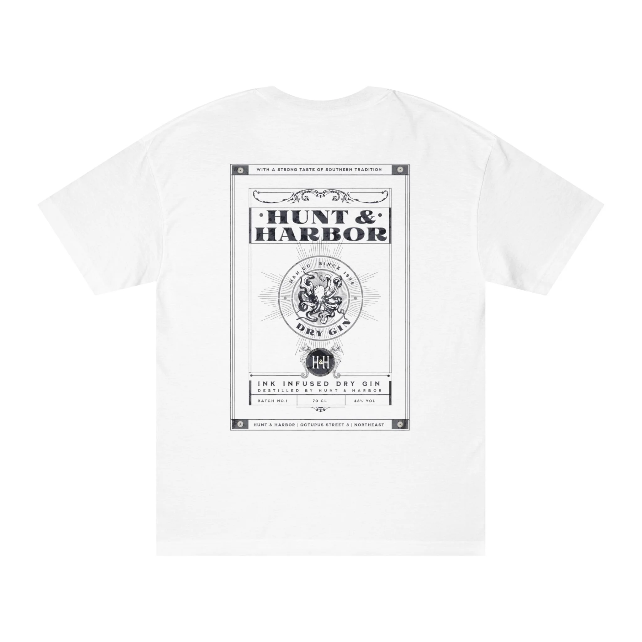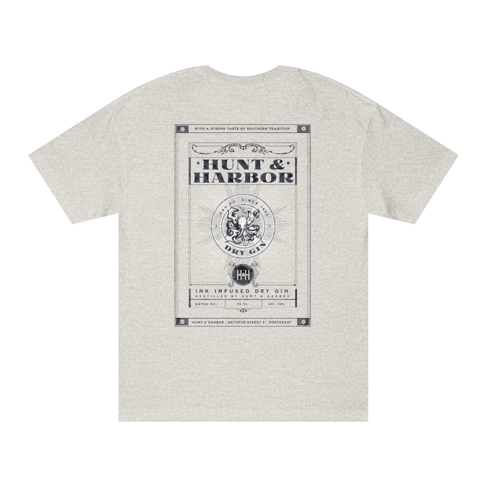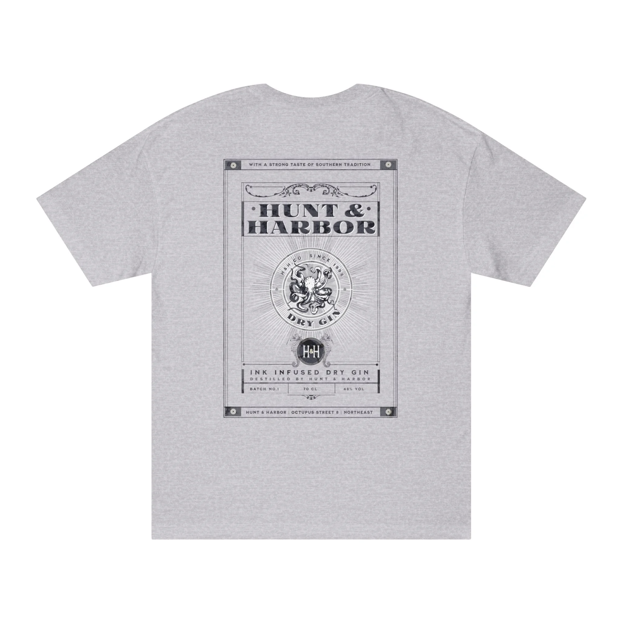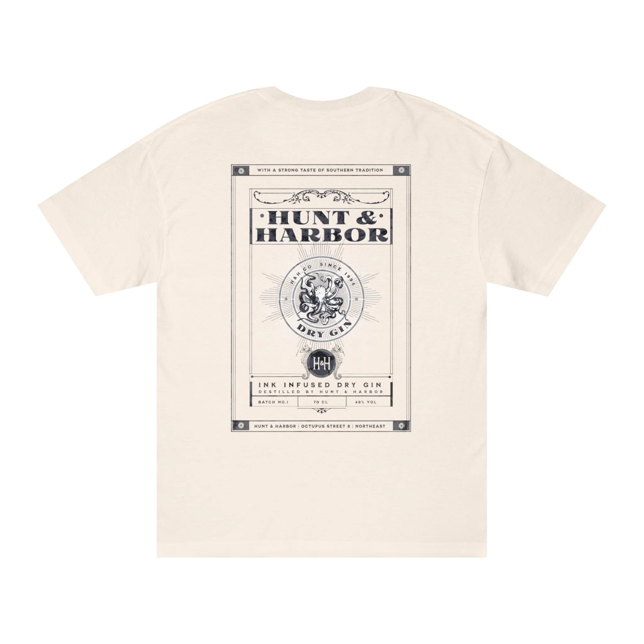 A clean, comfortable tee that feels like a worn-in staple from day one. The front carries a subtle chest emblem while the back unfolds a vintage-inspired label Squid Ink Infused Gin design — think maritime logs and coastal tradesmen’s stamps. Lightweight but substantial, it sits loose in a classic fit so you can layer it under a chore jacket or wear it solo on slow weekends along the pier. It accompanies mornings that begin with black coffee and the sound of gulls, and evenings spent comparing maps and tide tables with friends. Wear it when you want something low-key that still tells a story.